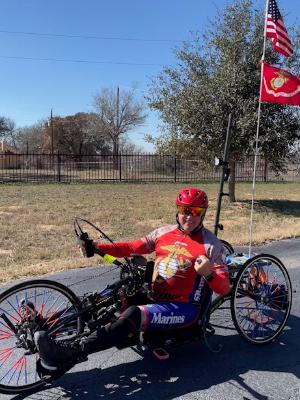 Fast forward to my move to Texas in 2021. I found the group Operation Comfort and started riding with them. However, the advancing neuropathy in my feet and legs started to become an issue and it is becoming increasingly difficult to pedal with my feet and legs. Hence, I switched from a recumbent bike to a donated handcycle since I never know on a day-to-day basis when the neuropathy will flare up. Although I need shoulder replacements and having gone through previous shoulder surgeries, my orthopedic doctor indicated the next replacement would have to be a reverse technique which will leave my shoulders with very limited mobility. With his permission, I choose to exercise and strengthen the muscles around the shoulder joints to prolong avoiding surgery.
